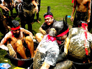 This is the day where all the shits are in. The last day. They call it the Integration Ceremonies/Rights. This is the day where all the freshmen are damned with shits and fucked with asses. Haha. Sorry for exagerrating. Oh well. The day started with a peaceful and solemn mass. And afterwards the Integration Proper started. There were a lot of speeches along the way that made me tensed. All the freshmen were required to use black shirt black shorts and trash slippers. But for the guys, you are required to be topless (luckily for me I did not do it). We were dressed up as Indians with paint in our faces and bodies. The first round was all freshmen students were to sit close to each other and have their blind folds on. After that, the upper class men will start torturing us by spilling ketchup and mayonnaise inside your shirt (God that was disgusting), pouring condiments like vinegar and some random shits in our entire body, at our face (which makes me wanna throw up during the ceremony). There were also fresh eggs crushed unto our face, head, body, etc which added to the foul smell of the condiments. After getting sticky and smelly, we were splashed with flour. Which I did not like because I might get rashes or allergies from it. Then, when we think all things are finished, it started to get worse. We were asked to crawl, roll, glide, spin, and play with mud around man-made obstacles just like the ones that are used in the military. At first I was scared, but later on, I got excited too. Crawling is hard and painful for the legs. Integrators are mean and ferocious which added to the agony of the obstacle. They’ll treat you like their slave and force you to work and perish more which I totally get pissed about. We were showered with rotten vegetables (yuck!!), rolled in flour in countless times, and crawled some more in mud. After that a buffet was waiting for the frosh. But it was not an ordinary buffet. Fresh celery, tomato, bitter gourd, cucumber, and garlic were served. The ones that I did not like was the celery, bitter gourd , and the garlic. My most hateful part of that experience was to eat 2 pieces of garlic together with a slice of bitter gourd at the same time. That tasted like nightmare. I almost threw up. Like I said almost. And then, after the hell buffet comes the catfish challenge. The challenge was to put the alive catfish in your shorts while crawling in mud. After hearing what I have to do, I just cursed silently and tried it. The catfish was crawling and biting inside our shorts close to my “thing” which feels very irritating. After that, You have to bathe yourself with spoiled jellies and make it as your facial wash. That was grouse indeed. That was the end of the obstacle course but that was not the end of the frigid ceremony. We ran in Mendiola looking like “taong grasa” and smelling worse than the creek. Everybody was staring, but we don’t fucking care. All we want was to get this shit all over and done with. After the ran we head back to school premises where two big firetrucks were waiting for us. The “Red Baptism” was about to start. All of us were bombarded with large volume of water which feels nice and very refreshing even if it hurts. That was also the signal that the Integration Rights were over and we can all take a bath now. But there’s a huge problem. Right. No water.